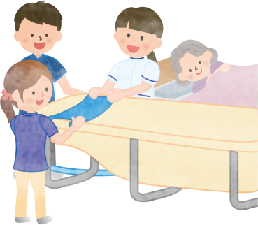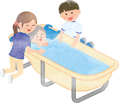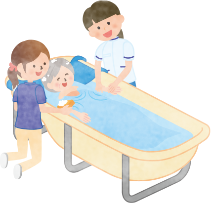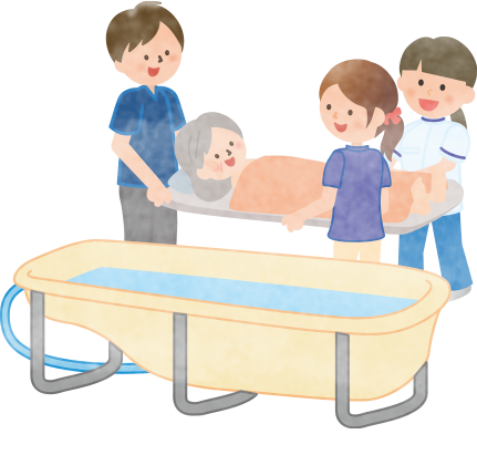 ベッドから浴槽へ、スタッフが安全に搬送、または移動の介助をします。